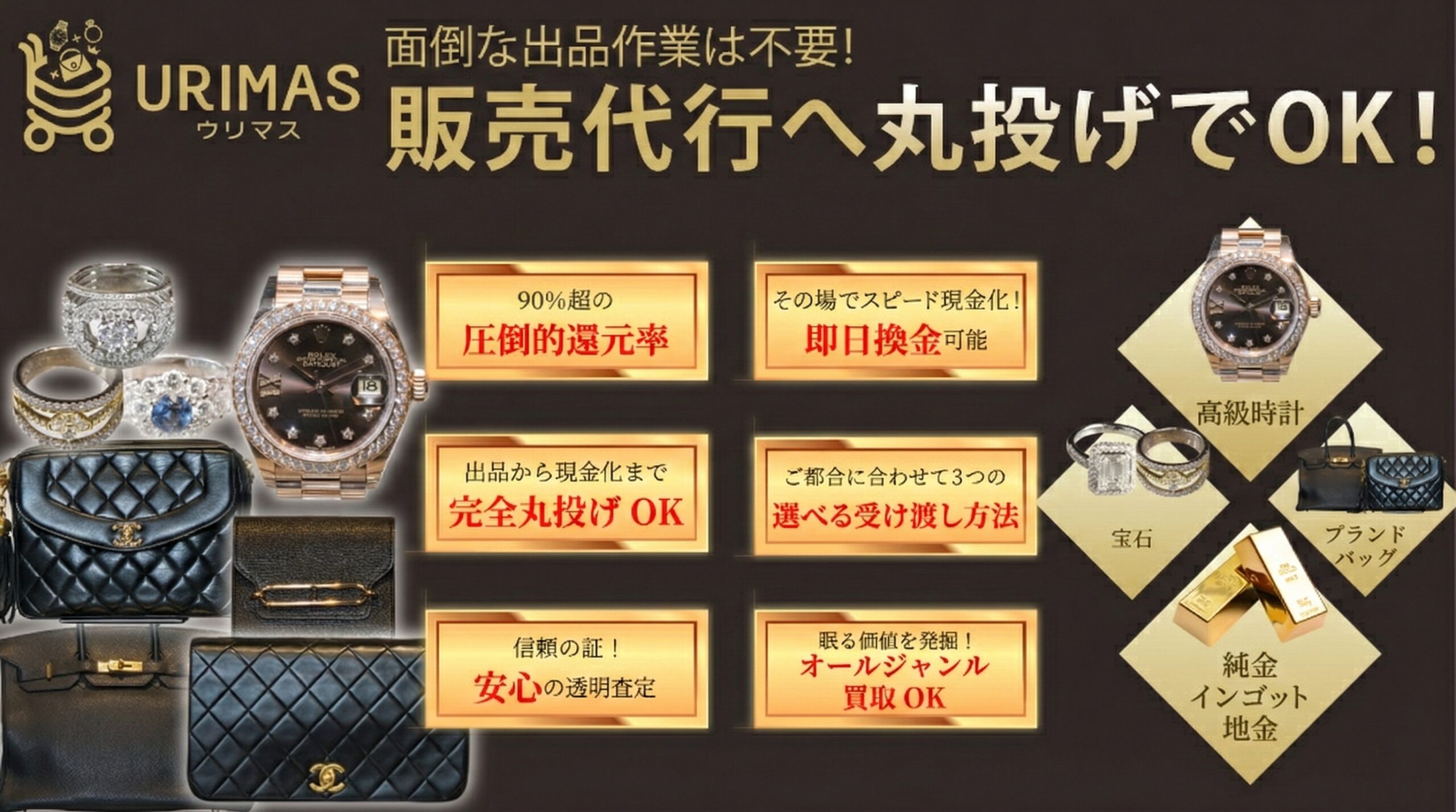 URIMASは、お客様に安心と最高値を提供するプレミアム販売代行サービスです。
